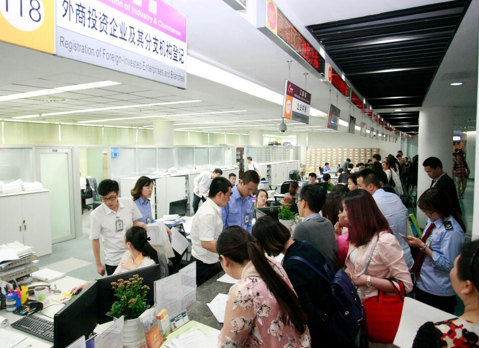 成都高新區政務中心工商登記窗口業務繁忙.