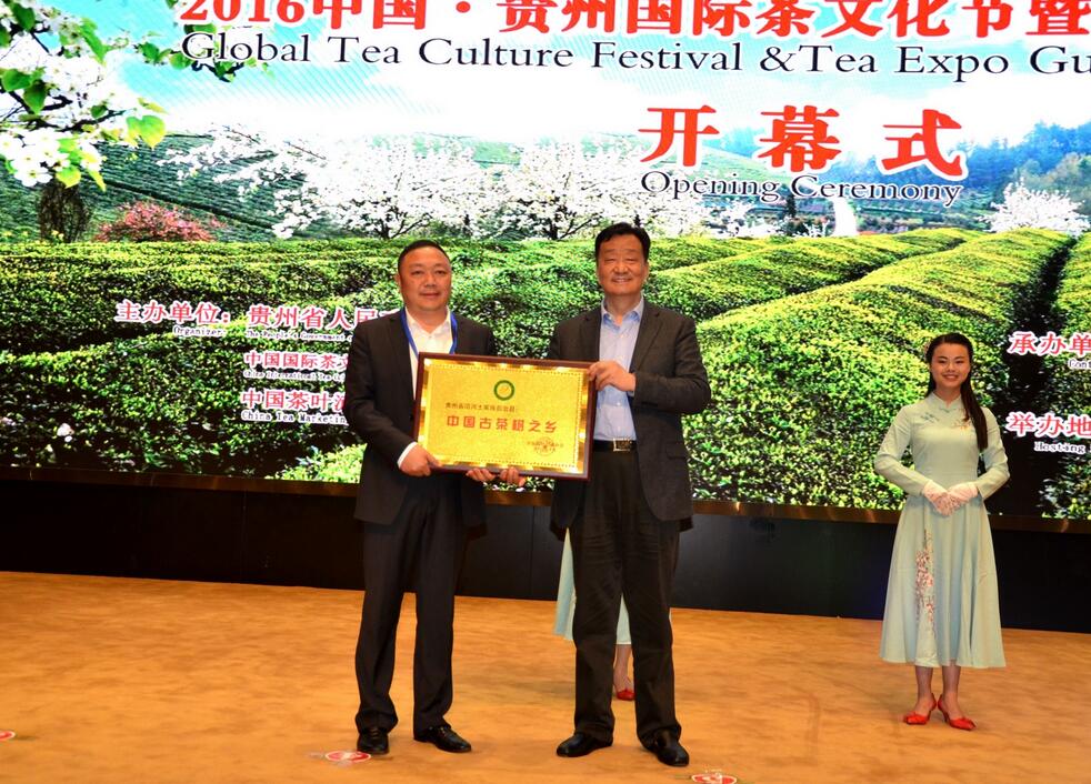 【香港商報網訊】記者 張麗、黃慶松 報道:4月20日,在2016中國·貴州國際茶文化節暨茶產業博覽會開幕式上,中國茶葉流通協會為貴州沿河土家族自治縣獲得“中國古茶樹之鄉”授牌。