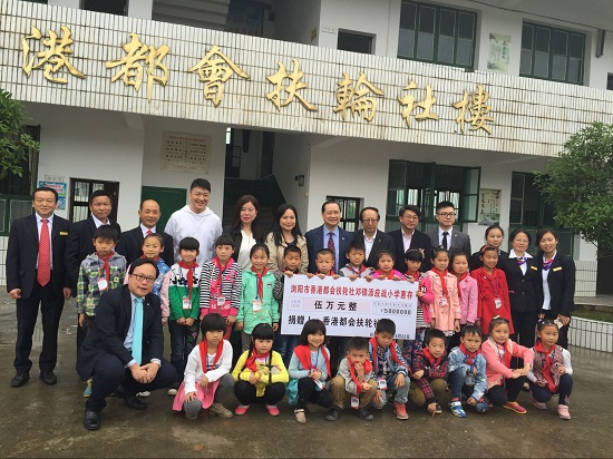 【香港商報網訊】記者唐勇平 報道:香港都會扶輪社一行8人在鄧錦添博士、扶輪社社長黃文滔的帶領下,來到湖南瀏陽市淳口鎮應戰小學開展捐贈助學幫扶活動。長沙工商聯主席彭繼球等領導到長沙南站迎接,一路陪同。