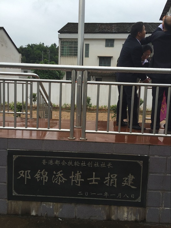 鄧錦添博士在瀏陽市淳口鎮鎮長周建國主持的捐贈助學儀式上說,血濃于水,香港與內地是一家人。希望力所能及的為內地教育事業,農村小學做點實事。