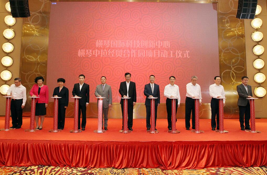 出席簽約活動領導按動橫琴中拉經貿合作園項目正式動工按鈕。