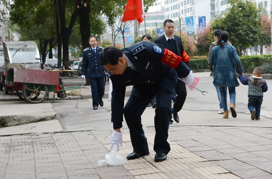 3月11日市城管局局長謝萬春帶頭開展彎腰行動攝影潘新杰
