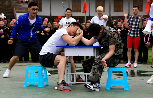 4月30日,記者在雷山體育廣場上看見,6名男嘉賓為了爭奪與女神張馨蕓的約會權,分別進行了扳手腕、俯臥撐、跳高、拔河等競技活動,總分最高者將有機會與女神晚上單獨約會。