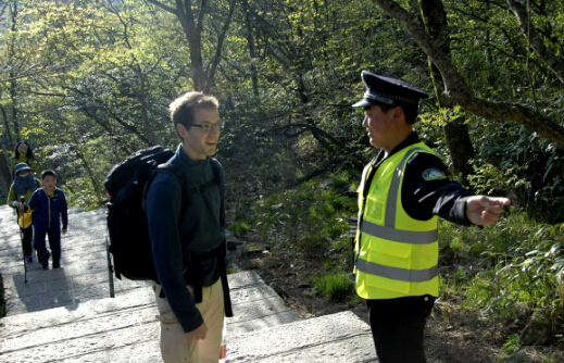 “五一”小長假期間,西海林管所防火隊員們也早早起床了,他們要在客人看日出前到崗。他們主要職責就是保護好黃山資源,做好路段巡護,及時制止客人在室外吸煙,勸阻客人采折樹枝,并做好夜間巡查。除了做好本職工作外,一天內做的最多的工作,就是回答過往游客的問詢,有的路段防火隊員們接受問詢近300次,一天下來累的嗓子都說不出話來。5月1日下午2點左右,負責西海飯店至北海賓館路段巡查的秦志平在大王松附近幾位游客在吸煙,他立即上前加以制止,游客意識到錯誤之后給予感謝。