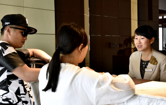 酒店服務人員每天迎來送往中外游客,被看作是黃山對外友好大使。“五一”小長假期間,黃山各酒店結合微笑服務,開展系列創優質服務活動。黃山西海飯店開展了黨員奉獻日等活動,黨員們利用休息時間義務到餐廳幫忙,各崗位還結合工作實際作出對客服務承諾。5月1日這天,西海飯店總臺接待員錢菁顯得比平時更忙了,總臺為住帳蓬的客人免費提供寄存行李服務,有的客人到店早,在客人等候進房時,錢菁和總臺服務員熱情為客人免費提供茶水服務、旅游行程建議,深受客人稱贊。