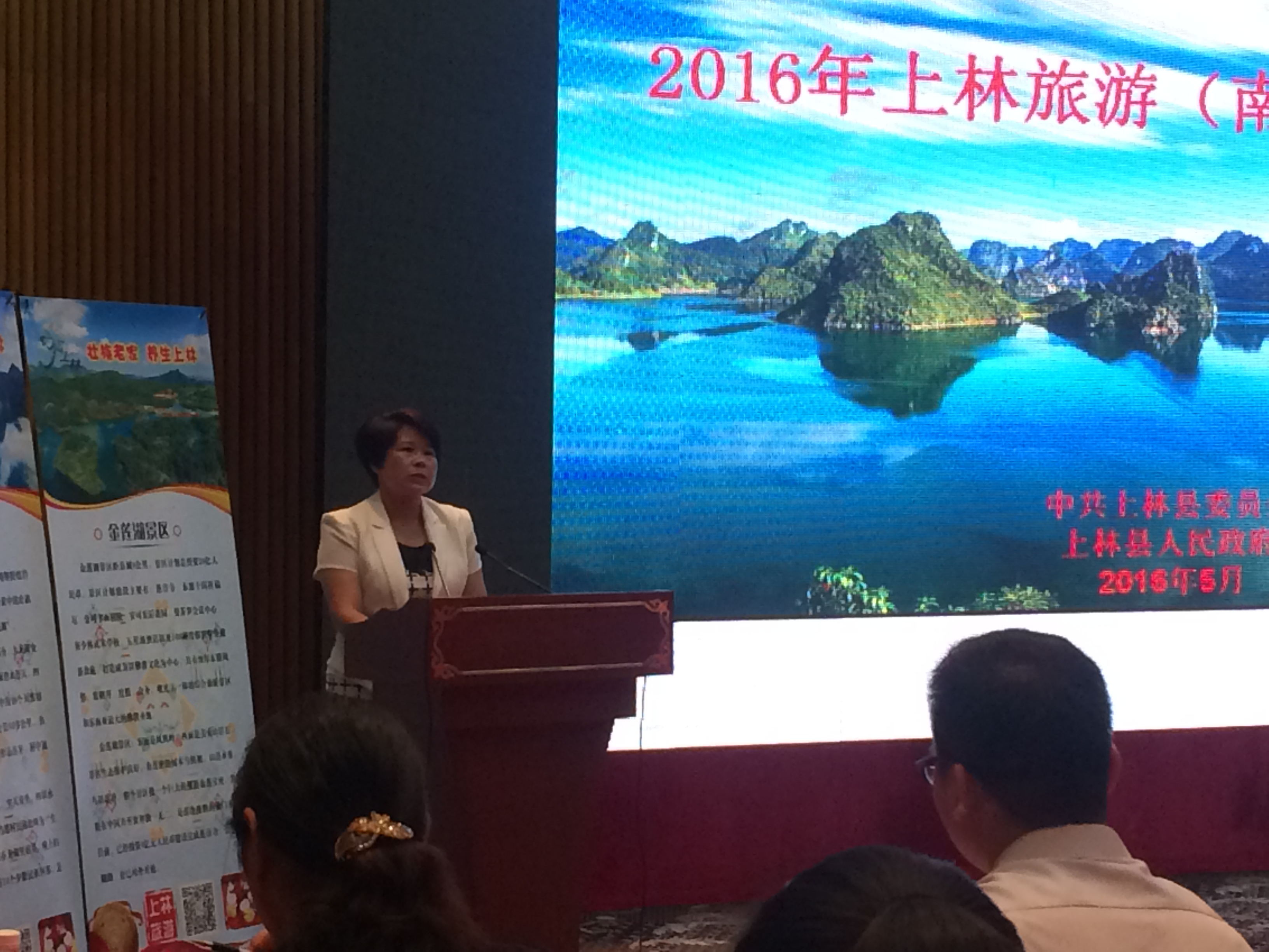 上林县委常委、县委宣传部部长、副县长蒙树枝介绍上林旅游资源。