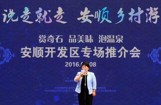 推薦發布會上,安順開發區黨工委副書記彭洪率先發表致辭;隨後,安順開發區黨工委書記代敏宣布推介會啟動;最後,安順開發區黨工委委員、管委會副主任孫濤就“說走就走 安順鄉村遊” 賞奇石、品美味、泡溫泉系列活動做現場推介。
