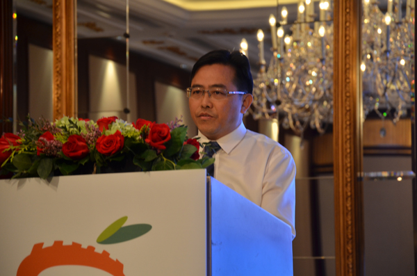 瑞金市政府市长赖联春在赣州(香港)旅游推介会上推介共和国摇篮·红色经典体验之旅。