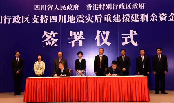 2008年四川汶川大地震發生後,香港特別行政區政府成立了“支援四川地震災區重建工作信讬基金”,投入90億港元在四川推展151個政府牽頭的援建項目,以及32個非政府機構的援建項目。此外,香港賽馬會亦撥出10億港元,支持7個重建項目。特區撥款援建的項目涵蓋教育、醫療衛生、社會福利、基建和臥龍自然保護區范疇。