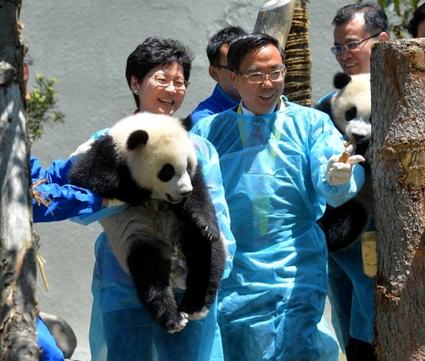 其後,林鄭月娥主持了“中華大熊貓苑”開園儀式。“中華大熊貓苑”是“中國保護大熊貓研究中心”在臥龍自然保護區耿達鎮神樹坪的基地,是特區援建臥龍的二十三個項目中最具標志性的項目,也是全球最大的大熊貓飼養、繁育、研究基地和全球首個大熊貓野化培訓基地。基地的設施包括大熊貓圈舍三十套、熊貓幼兒園、大熊貓繁育中心、大熊貓醫院、大熊貓野化培訓區、科研及行政辦公綜合樓、科普教育中心、遊客接待中心等。此外,基地還配有先進的儀器設備,為大熊貓科研工作提供全面支援。項目援建金額為二億五千八百五十九萬港元。