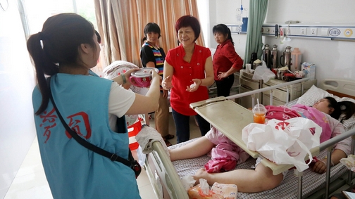 “初為人母,我覺得很幸福。”昨日下午,福醫大附屬二院婦產科14病區產房內,剛剛當上母親兩天的蘇曉玲沉浸在喜悅當中,接過泉州市婦聯圓夢義工服務中心志願者遞上的愛心雞湯。