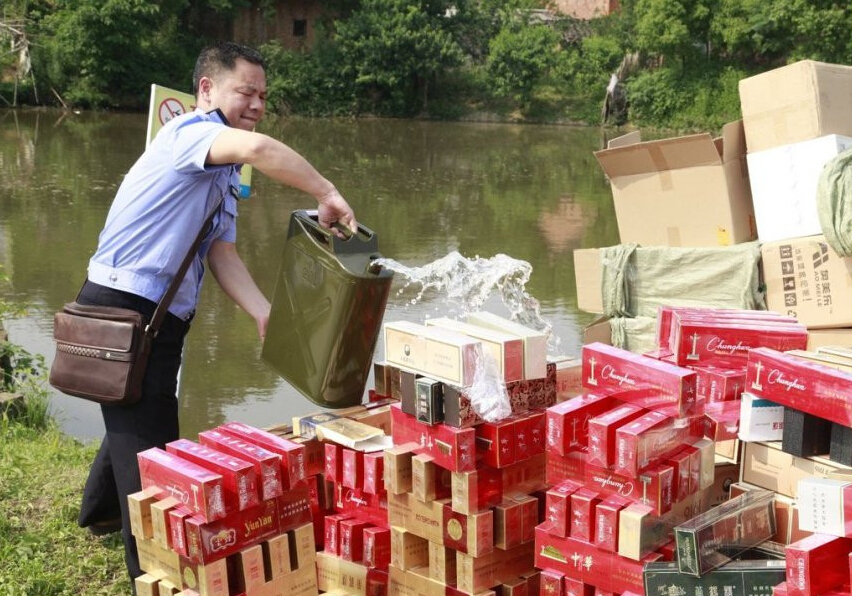 活動銷毀現場的假煙包括黃鶴樓1916、中華、芙蓉王等20余品種共1200余條,涉案價值55萬余元。