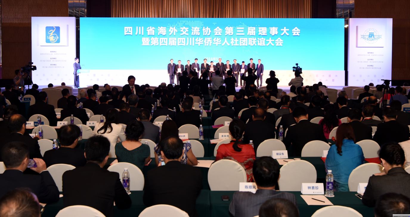 【香港商報网訊】記者金山報道:2016年5月29日上午,由四川省人民政府、四川省外事僑務辦承辦的“四川省海外交流協會第三屆理事大會暨第四屆四川華僑華人社團聯誼大會”在成都香格裏拉大酒店隆重開幕。四川省委副書記、省長尹力,國務院僑辦副主任、中國海外交流協會副會長譚天星,四川省委常委、常務副省長、省海外交流協會會長王寧,四川省人大常委會副主任曾省權,四川省政協副主席陳文華等領導出席開幕式。來自全球75個國家和地區的350餘位僑領、僑商、專家學者和專業人士社團負責人應邀出席大會。