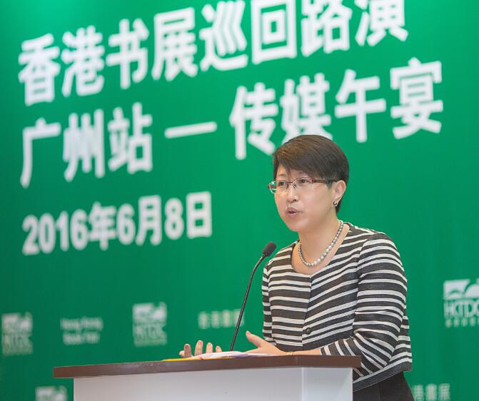 香港贸发局助理总裁张淑芬在广州路演上表示,香港书展多年来得到广大读者、出版社以及作家的鼎力支持,已经发展成为大中华地区每年一度的文化盛事,去年书展的入场人士中,约一成属访港人士,当中不少都是来自广州及邻近地区。他们除了享受在书展选购心水读物外,更热衷于参与书展期间的讲座及分享会,与两岸三地以及海外知名作家,作近距离接触,显示香港书展成功促进文化交流,推动阅读文化。