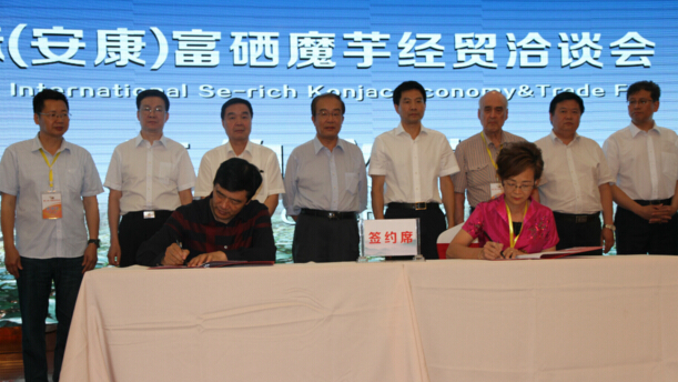【香港商報訊】記者胡秦玉報道:8日,以“世界魔芋看中國、富硒魔芋數安康”為主題的國際(安康)富硒魔芋經貿洽談會在陜西省安康市舉行。洽談會上,安康市政府分別與中國農業國際合作促進會、中國園藝學會魔芋協會簽訂了魔芋產業戰略合作協議和商貿合作協議,安康企業也與外商簽訂了商貿合作協議。