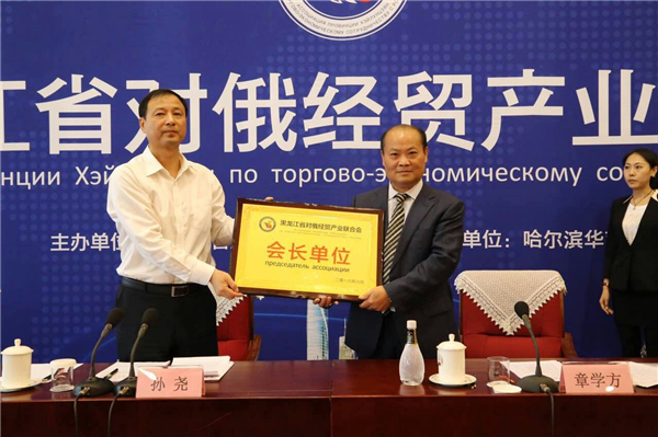 图为 黑龙江省对俄经贸产业联合会成立现场