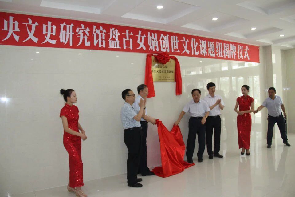 王全書、趙德潤、穆仁先、林鴻嘉共同為“中央文史研究館盤古女媧創世文化課題組”揭牌