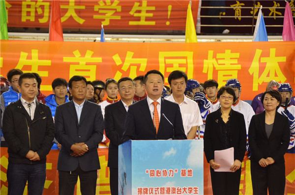 赵敏说,哈尔滨体育学院是全国培养冬季项目世界冠军的摇篮,为国家培养出了多名优秀运动员。此次,黑龙江海外联谊会依托哈尔滨体育学院丰富的冰雪运动项目资源优势,联合创建港澳台青少年国情体验基地,旨在为港澳台青年朋友搭建一个体验国情、了解内地、认知龙江的新平台,让港澳台青年学生充分领略龙江独具特色的冰雪文化,进一步增进文化交流。
