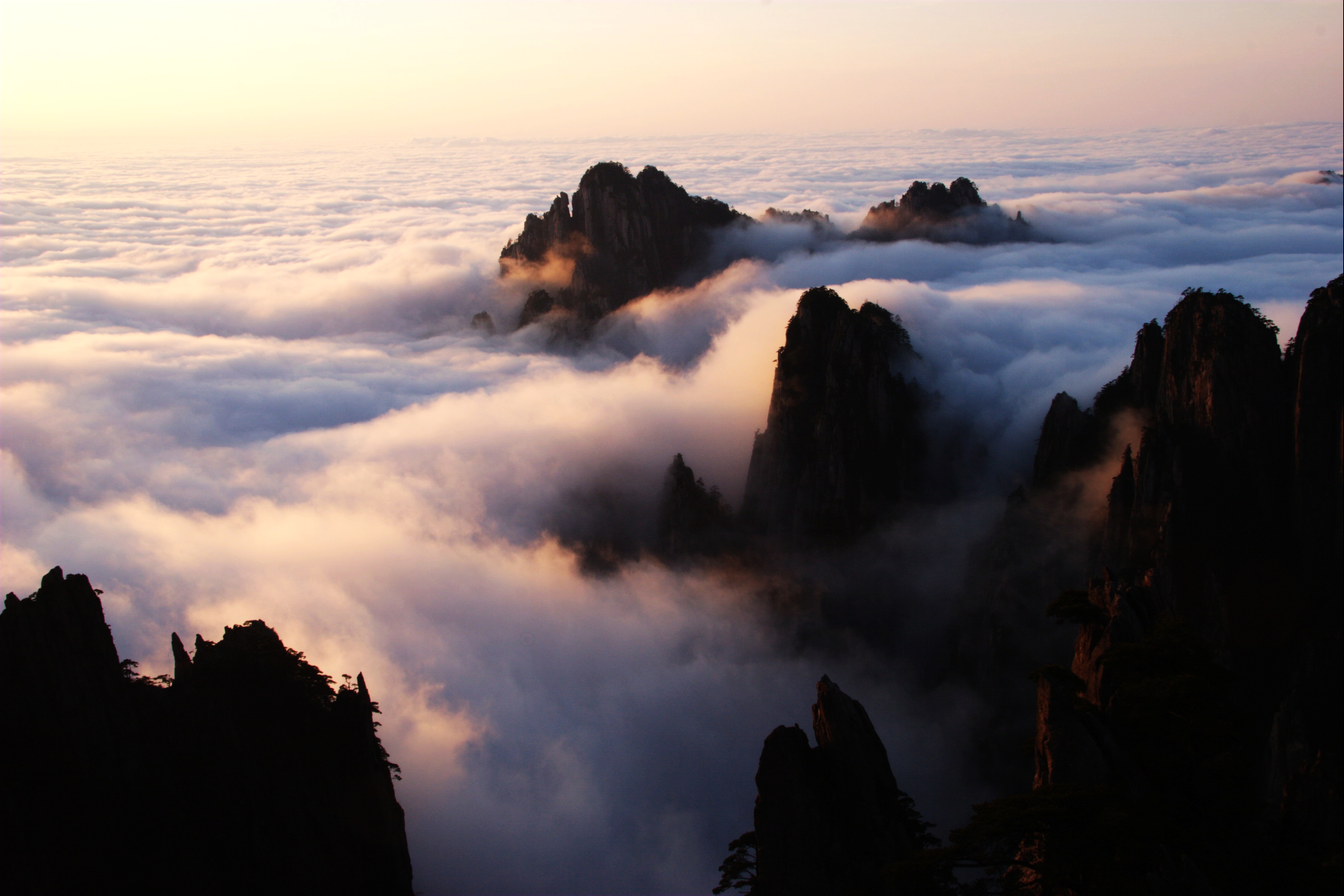黃山云海可分成五大云區,即東海、南海、西海、北海、天海,“云以山為體,山以云為衣”不同的景區云與山體完美的結合,形成一幅幅動中有靜,靜中有動的云海大觀。