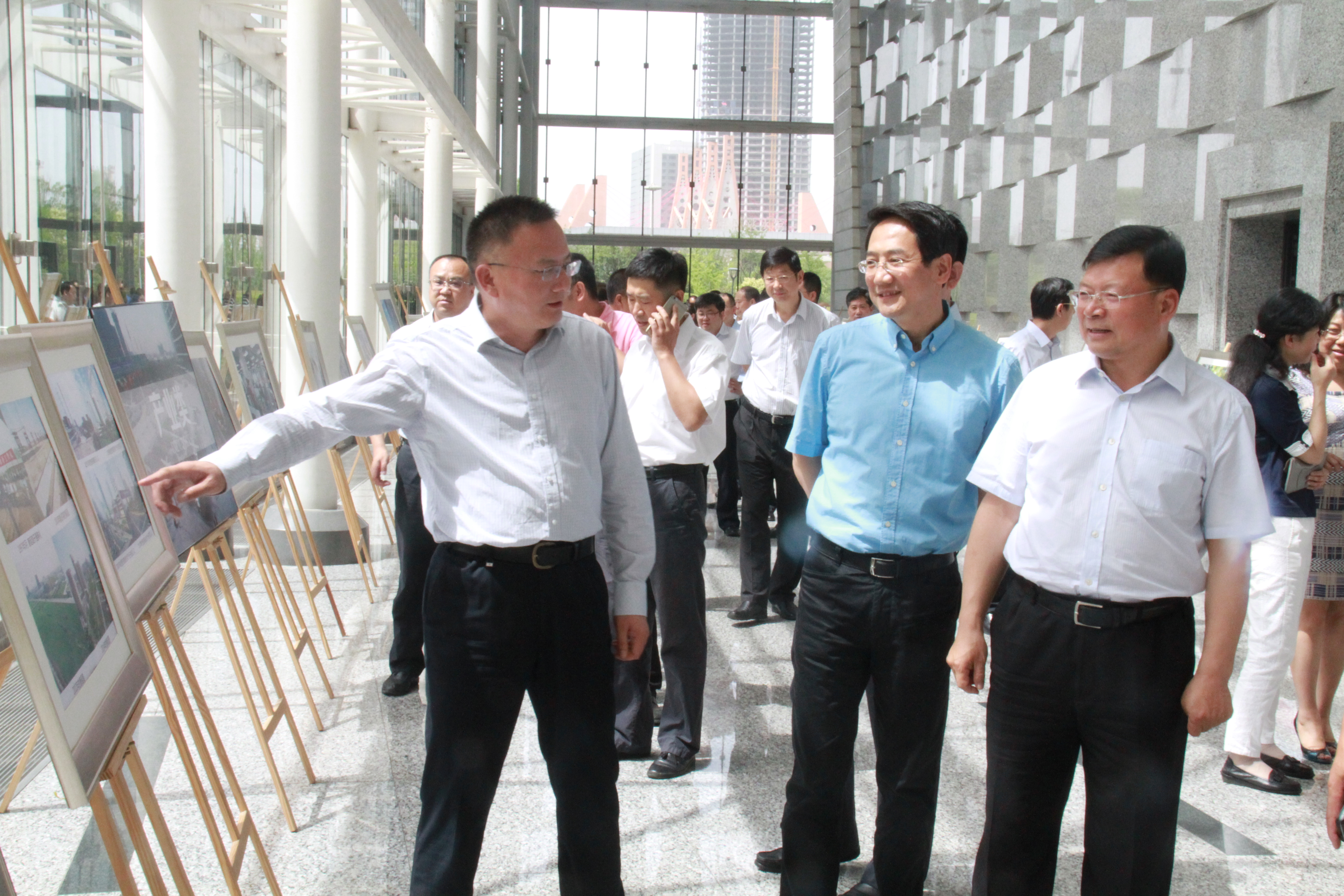 西安高新区党工委书记赵红专(右一)观看“魅力高新”摄影大赛作品展