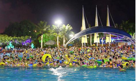 除了玩樂設施,這裏還為遊客准備了一場激情的狂歡派對。夢幻水城造浪池水上舞台今年配備了高清LED背景、增加現場音響效果,現場演出效果大大提升。