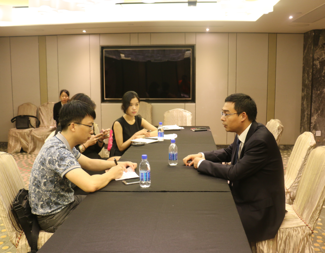 三亚旅游委主任樊木(右一)在港接受本报专访
