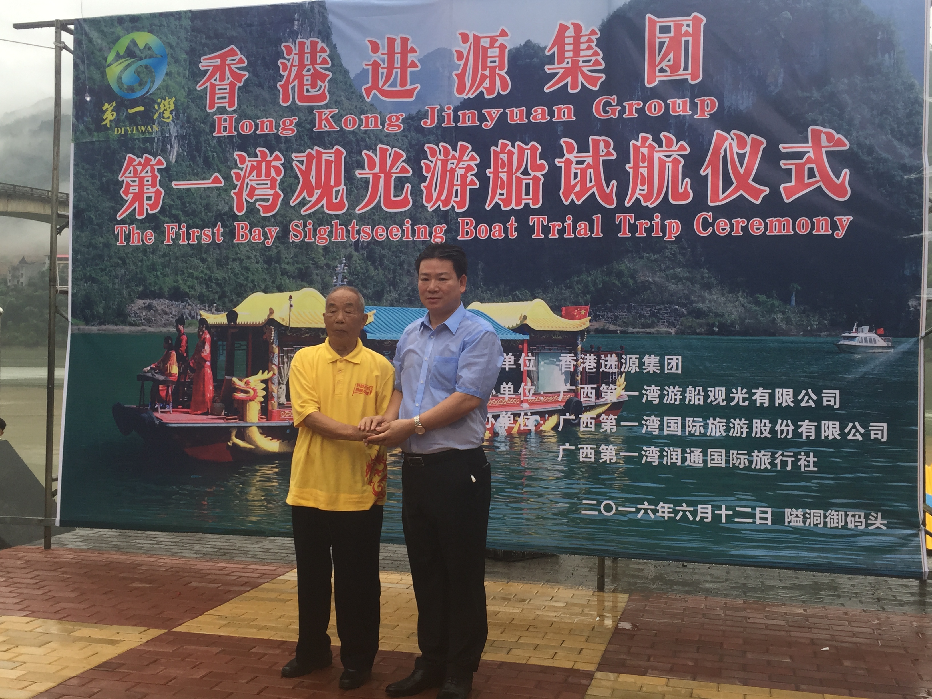6月6日,CTM控股有限公司、國泰達鳴金屬制品廠有限公司董事局主席吳天賜率領香港古盈同鄉會到訪東蘭,在對東蘭旅游進行實地考察后,在座談會上,吳天賜宣布港資正式入股廣西第一灣國際旅游股份有限公司的決定,成為第一灣年紀第二大的股份公司股東之一。吳天賜說,東蘭空氣好、很清靜,開發旅游的基礎很好,未來發展很有潛力。而84歲的吳老談起自己的長壽養生秘訣稱,不要給自己設定目標,過一天要興一天。
