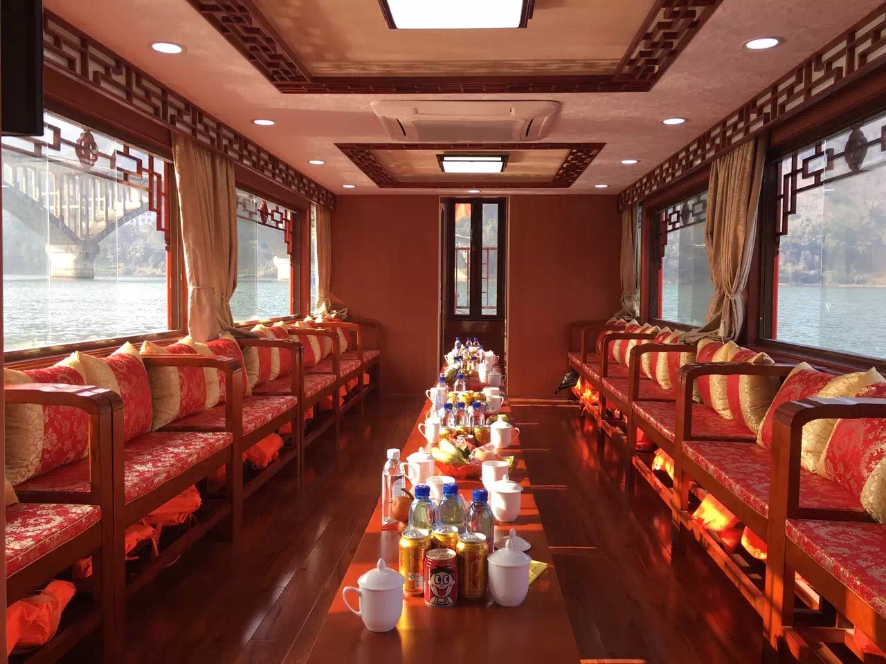 而紅水河百里畫廊的水中仙境無法高空俯視實屬遺憾,因此,廣西第一灣國際旅游股份有限公司計劃在紅水河打造豪華游船「東蘭一號」、「長壽一號」、「第一灣一號」,為游客打造全程舒適寬敞的觀賞游覽體驗。據廣西第一灣國際旅游股份有限公司潤通國際旅行社總經理覃源介紹,目前投入運營的三艘游船每艘限載客50人,船上配備有宮廷坐墊和靠墊,還有宮廷里的「新婚夫婦」式侍應生,即日起游客可通過旅行社進行船票預訂,乘坐其中仿佛穿越時空,回到干隆年間,讓人流連忘返。覃源透露,公司計劃繼續投入紅水河游船共18艘,后面還有15艘分別是「將軍一號、廣西一號、紅水河一號等……」。