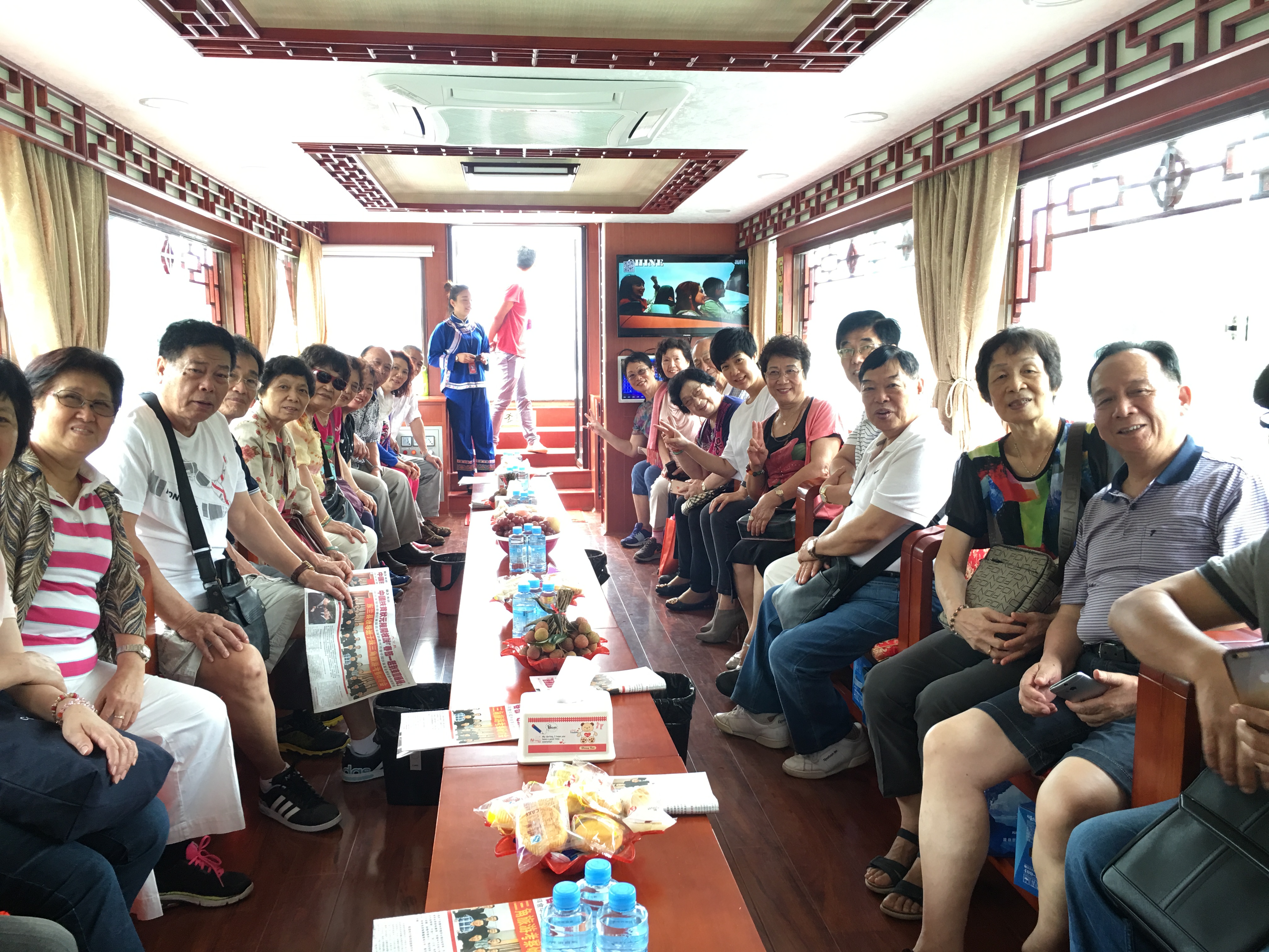 香港古盈同乡会乡贤乘第一湾仿古画舫游船欢渡红水河