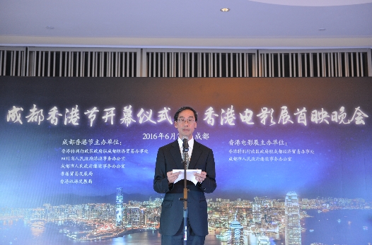 香港特別行政區政府駐成都經濟貿易辦事處劉錦泉在2016 成都香港節‧電影展開幕式上致辭