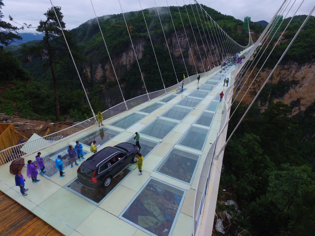 【香港商報網訊】記者張思靜報道:從立項到建設曆時九年時間的世界最高、最長玻璃橋——湖南張家界大峽穀玻璃橋,日前已經完成全部橋面玻璃鋪設,並於25日,在現場數十餘人的鐵錘猛砸和越野車碾壓下,成功通過安全檢測,全面展示出該座世界第一全玻璃橋梁的安全性和承載能力。