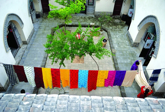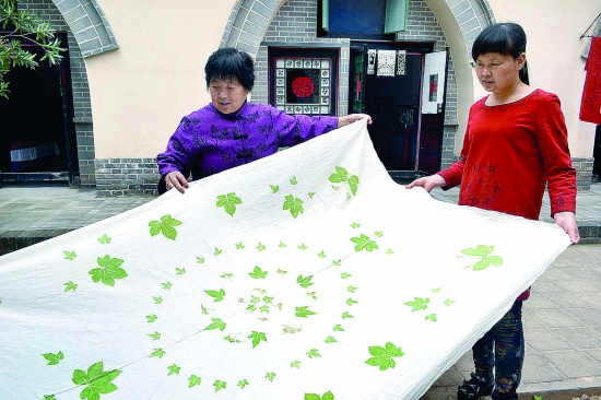 這種手工制作的花布樸拙美觀、不易褪色,明清以來一直被當地村民用來制作衣服、被面、蓋布、圍巾等,現在朱秀雲等人還用這種工藝做出手包、團扇、文化衫等,讓這種古老的民間工藝再次煥發青春。