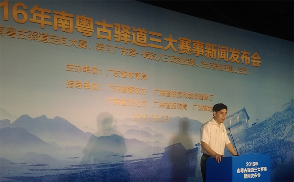 【香港商報網訊】記者李苑立報道:6月29日,廣東省體育局在發布會上對外宣布,今年下半年,將分別舉辦“2016年南粵古驛道定向大賽”、“奔向廣東第一峰鐵人三項挑戰賽”和“徙步穿越丹霞山”三大體育賽事活動。