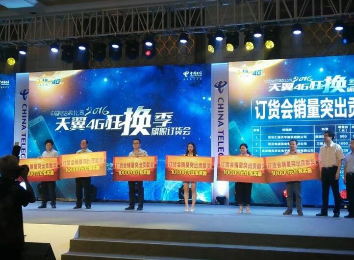 【香港商報網訊】記者邱保華通訊員劉斐报道:樂視智能手機全場走秀展賣、VR/體感槍王、oppo華麗亮相……6月30日,中國電信湖北公司2016天翼手機狂換節訂貨會火爆上演,業界二十多個品牌、500多家經銷商參會。