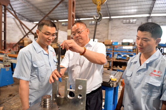 一有空,屠建國【中】就要到車間里轉轉和工人進行交流