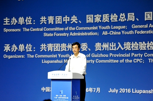 團中央書記處第一書記秦宜智在主題論壇上發表了《凝聚起走向生態文明新時代的青春力量》主旨講話。他指出,生態文明貴陽國際論壇為各國交流分享生態文明建設經驗、促進可持續發展國際合作搭建了橋梁和平台。在推進生態文明建設、打贏脫貧攻堅戰中,廣大青少年是有生力量,也應當成為帶動全社會的活躍因素。建設生產發展、生活富裕、生態良好的美麗中國,需要青年人奮發有為,銳意進取,攜手努力。青年要爭做引領綠色潮流的先行者,以勇立潮頭的勇氣、勇於擔當的精神,帶頭倡導生態文明價值觀,率先踐行綠色生產方式和生活方式。要爭做推動綠色發展的實幹家,以創新的智慧、創業的熱情、創優的追求,在同步推進新型工業化、信息化、城鎮化、農業現代化進程中,矢志建功綠色發展,積極參與生態扶貧,帶頭投身綠色產業,帶頭發展生態經濟。要爭做傳播綠色文化的排頭兵,充分運用生態環保這一世界共同語言,與各個國家和地區青年加強對話、增進了解、相互學習、共同行動,自覺把生態文明作為國際交流的重要內容,傳遞中國好聲音,傳播青春正能量,講好美麗中國的故事。