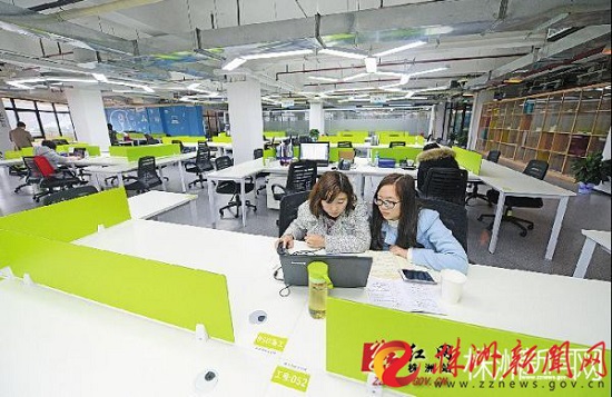 新動力眾創空間的辦公區。 (株洲日報株洲新聞網記者 譚浩瀚 攝)
