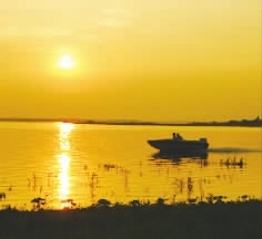 水域中心有多處島嶼,乘船而入,看濕地植被形成一道自然的寬窄不一的水岸線:水中羽杉、灘涂蘆葦、濕地水禽、鷺鳥飛翔、金沙碧水、蛙聲鳥鳴,古樸而野趣。