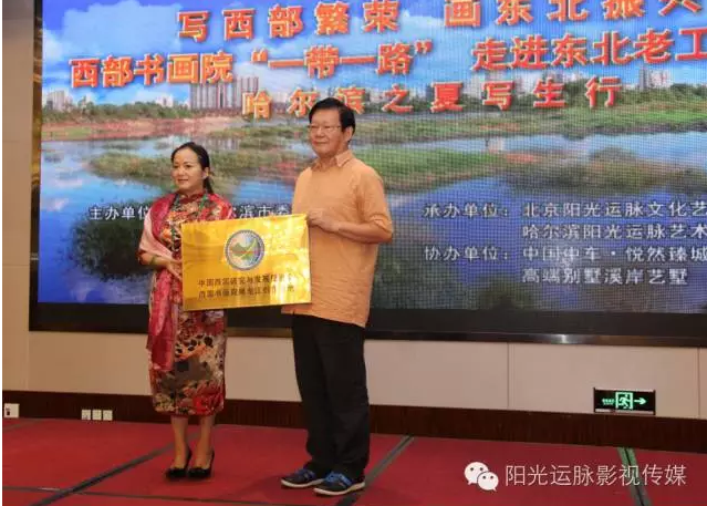 “写西部繁荣 画东北振兴” 西部书画院哈尔滨写生行,会议及欢迎晚宴在凱宾斯基酒店隆重举行。西部书画院执行院长、阳光运脉集团董事长——刘凤玲,中国美协顾问、中国少数民族美术促进会会长、十世班禅画师、中国西部发展促进会西部书画院院长——尼玛泽仁,全国工商联第九届副主席、中国西部发展促进会理事长——程路 先后致词。会议期间颁发西部书画院执行院长聘书、西部书画院副院长聘书、宣读西部书画院理事等环节。