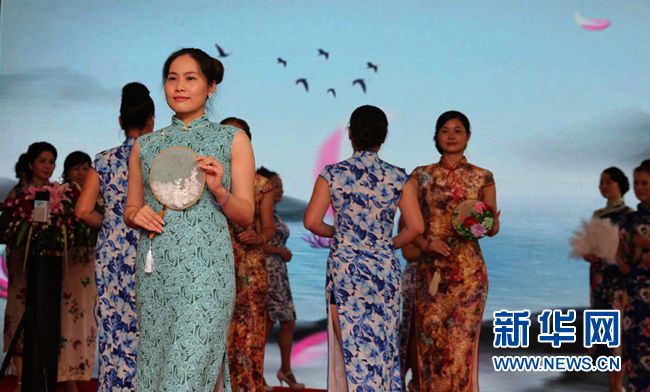 新華網長沙7月17日電(記者張晶 邵一嬋)女書旗袍秀、女書歌曲吟唱、女書歌舞表演,還有女書大使現場即興創作,17日下午,古老而神秘的國家級非物質文化遺產——江永女書在綠地湖湘中心驚艷亮相。