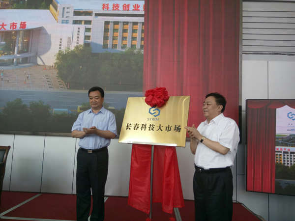 吉林省委常委、长春市委书记王君正,长春市委常委、长春新区管委会主任孙亚明为科技大市场揭牌。