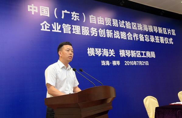 在啟動儀式上,橫琴海關吳義榮關長、橫琴新區工商局吳創偉局長在現場共同簽署了《關於共同推進中國(廣東)自由貿易試驗區珠海橫琴新區片區企業管理服務創新戰略合作備忘錄》。