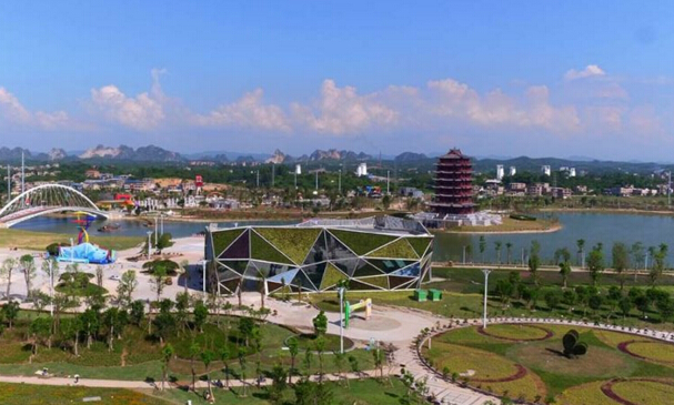 據了解,廣西玉林園博園位于玉林城郊的玉東湖片區。總規劃面積1402畝,項目投資9.05億元人民幣,園博園內共有14個以廣西各地方命名的特色子園區。園博園以“一帶兩岸四區”為規劃結構,劃分為主展館區,城市展園區、休閑濱湖區、園藝博覽區四個園區。