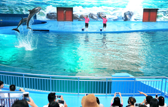 此外,極地海洋世界還推出了兩個綜合性表演場海豚劇場、美人魚劇場。海豚劇場可同時容納2500人觀看演出,來自大海深處的藍色生命海獅和海豚將在每天定時為廣大游客獻藝。聰明、溫順的海豚和雜技明星海獅在這里載歌載舞,幽默滑稽、新奇精彩的表演,令您捧腹大笑,在歡快的氛圍感受動物的神奇魅力。美人魚劇場視窗為極地海洋世界最大的視窗,長15米,高5米,厚度達到30厘米,重25噸,價值1000多萬元。在這里將進行精彩的美人魚表演、水下芭蕾表演和人鯊共舞表演。讓您感受人與自然、人與動物的和諧。