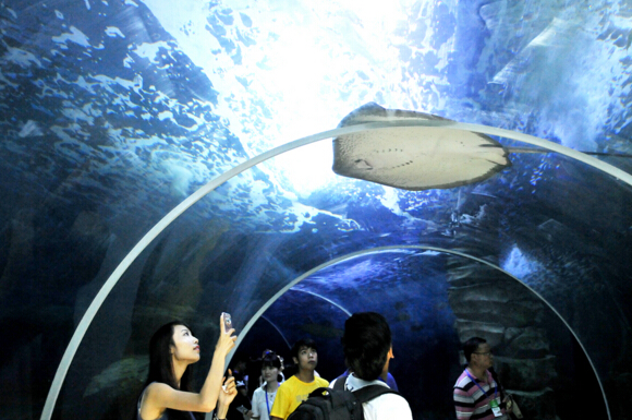 據了解,多彩貴州城極地海洋世界是貴州省2015年的大型旅游招商項目,也是貴州省重點打造的100個旅游景區備選項目之一,位于多彩貴州城內,占地面積20畝,總投資約5億元,建筑面積18000多平方米,是貴州省第一家以海洋生物觀賞、海洋動物表演為主,集海洋文化、科普教育、生態保護、旅游觀賞為一體的大型海洋展館,由亞馬遜熱帶雨林區、海洋珊瑚礁魚區、鯊魚區、極地世界區、海底隧道區、夢幻水母區、科普展示區及“美人魚”劇場、海豚劇場等七個展區兩大劇場組成,展出北極熊、白鯨、海豚、海獅、企鵝等世界級瀕危物種及國家一、二級保護動物中華鱘、揚子鱷、娃娃魚等300多個品種上萬尾(只)海洋生物。特別推出了海豚狂歡表演、海獅互動表演;人鯊共舞表演、水下芭蕾和美人魚表演等,并設有海洋餐廳、海洋購物中心等配套設施。