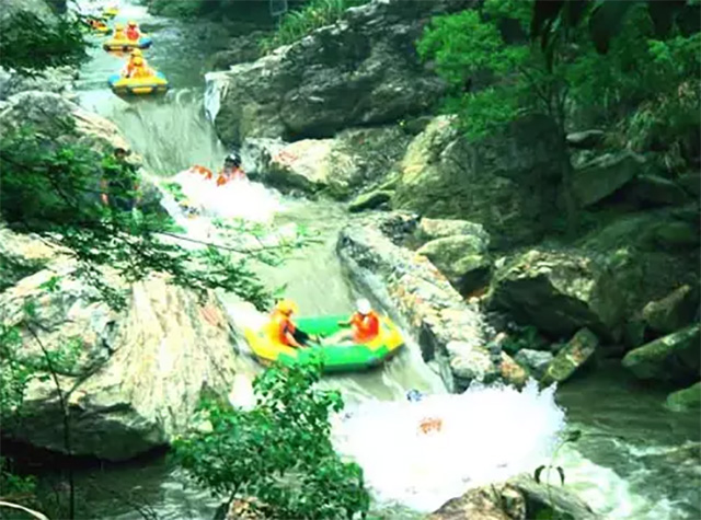 位于瀏陽龍伏鎮,號稱“中南第一漂”。河道全長3.8公里,總落差198米,其中單個落差百米飛瀑可達35米。