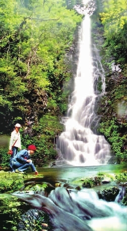 行走在深山幽谷中,一道道流泉飛瀑送清涼。龍潭、五凼、長菖灣瀑布、飛珠落玉瀑布、猛虎跳澗瀑布、三岔水瀑布,在夏季漲水期,從高處咆哮而下,如白蛟翻滾。登上1357米的陽明山,始建于宋代的萬壽寺在云海中飄浮。