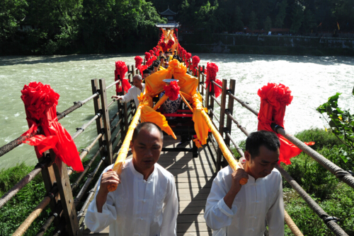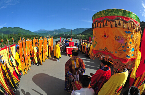 在當天舉行的“李冰祭祀儀式”上,九十多位道廟高人同聚二王廟,設道場、誦經文,祭祀天府之國締造者——李冰,祈禱來年風調雨順。之后他們來到魚嘴處,將岷江水取入瓶中,拜天、拜地、拜水,感恩先祖李冰和岷江之水的庇佑。