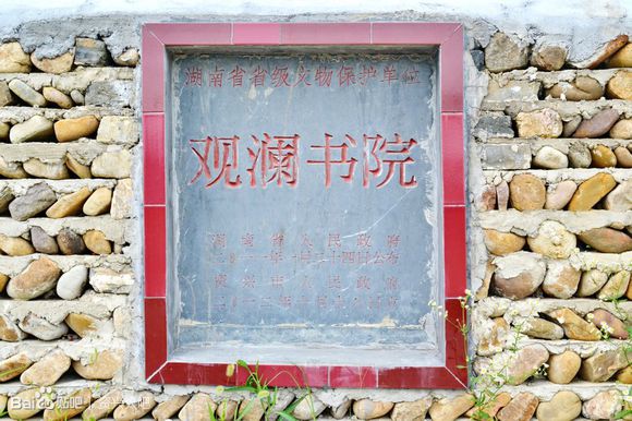 觀瀾書院的創立者為曹行錫,南宋紹定元年(戊子1228)賜進士,官至巴州刺史。為教育曹氏后代,曹公于南宋紹定四年(辛卯1231)在今資興市七里鎮柏樹村創立了曹氏家族書院,取孟子“觀水必觀瀾”之意,因建在醽醁泉旁,所以還叫過“醽醁書院”、“醽泉書院”。