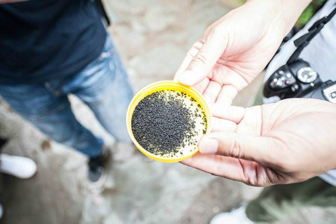 這個黑乎乎的東西叫蟲茶,但它不是真正的茶,而是幼蟲食用了某些當地植物后排出的糞便。雖然聽起來有點怪怪的,不過飲用蟲茶有清熱祛暑、解毒、健胃助消化等功效,堪稱秒殺x多寶x老吉的消夏神器、侗寨版貓屎咖啡。